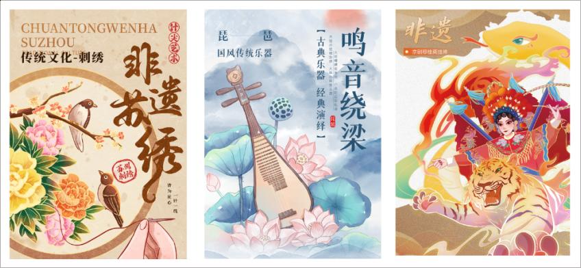 课程的核心产出—“中国传统文化创意海报”,已超越传统“课程作业”的范畴,成为兼具文化深度与传播价值的完整作品。从前期的文化脉络梳理、主题定位,到中期的创意草图绘制、数字化呈现,再到后期的设计迭代与成果答辩,学生完整经历了一个专业设计师的工作流程。这些浸润着思考与匠心的作品,不仅成为课程考核的凭证,更直接对标“中国好创意”等全国性权威赛事,实现了学习成果与行业标准的高位衔接。