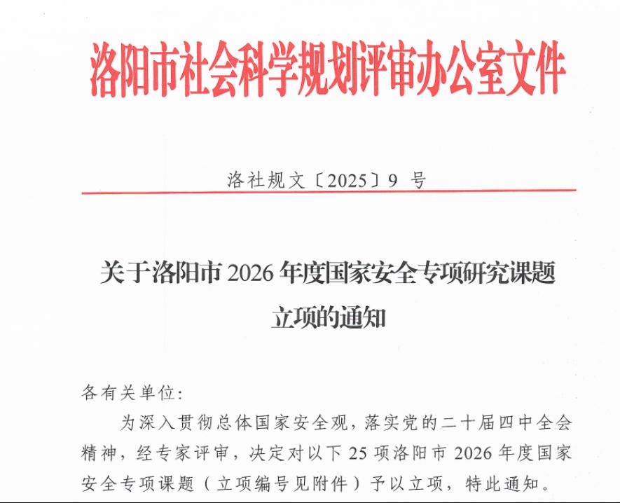 2025年12月15日洛阳科技职业学院电子商务学院首次获批两篇洛阳市国家安全专项研究课题,不仅是学院科研工作的双重突破,更在学院责任践行、特色彰显、社会价值创造及地方教育发展层面形成协同合力,成为串联多方发展的重要纽带,为区域国家安全建设与职业教育创新注入双倍动能。