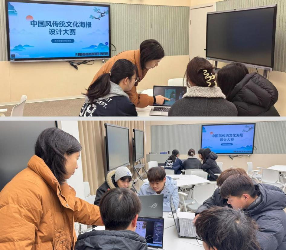 备赛过程中,师生同心同向,形成浓厚的竞技与传承氛围。学生们或独立创作、或团队协作,在灵感碰撞中探索传统文化的现代表达;教师们不仅倾囊相授专业技法,更注重引导学生深化文化认知,守护传统美学的核心内涵。不少学生表示,通过此次备赛导向的竞赛,学习目标更明确,技能训练更具针对性,对运用数字艺术讲好中国故事、参与更高层次专业赛事充满信心。