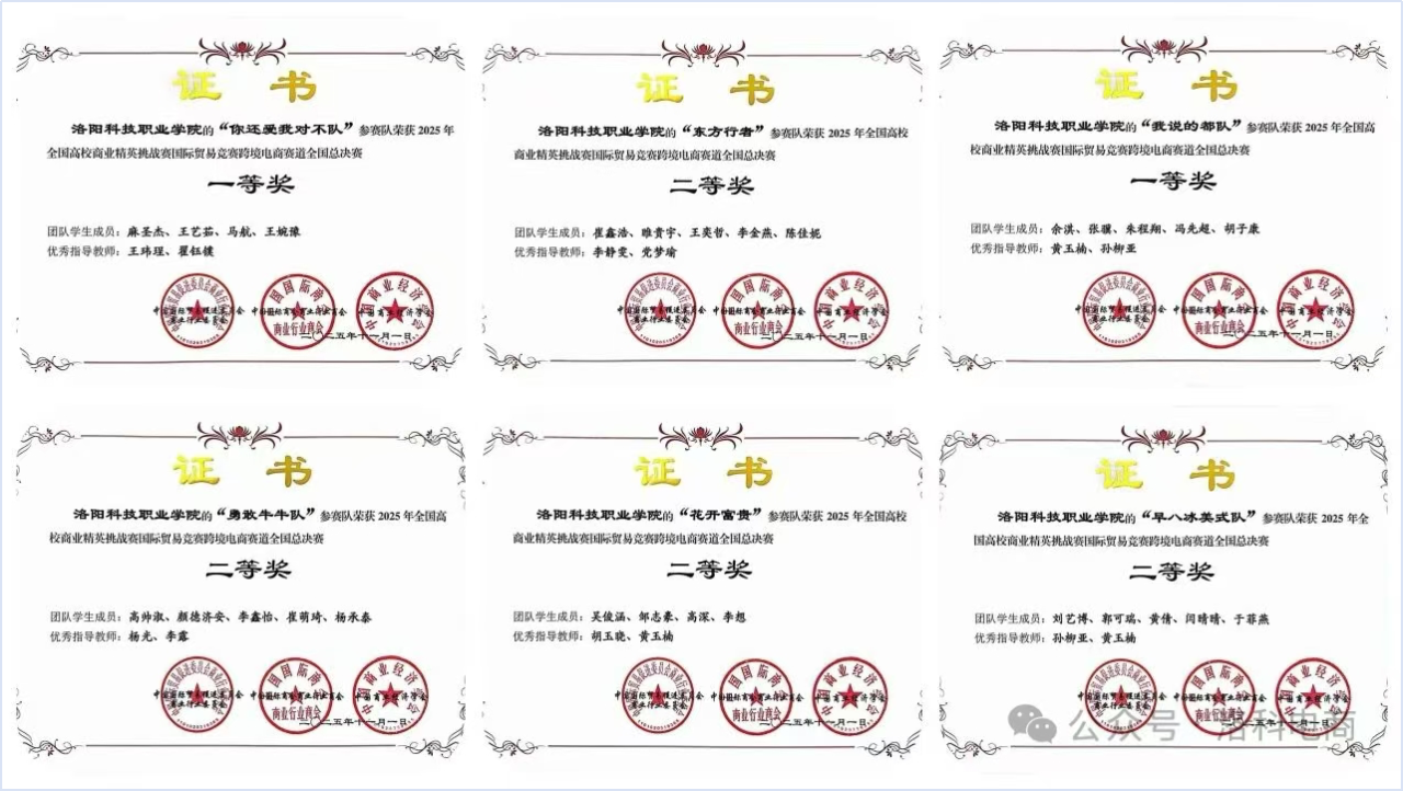 学院深度牵手洛阳综保区与本地企业,将真实报关资料、平台违规案例、企业纠纷原件搬进课堂。实打实的产教融合,让课堂紧贴职场一线。在实景化训练打磨下,超90%学生实操能力大幅提升,省级比赛、国家级竞赛赛,奖杯一座接一座。这些都是学生敲开职场大门的底气。