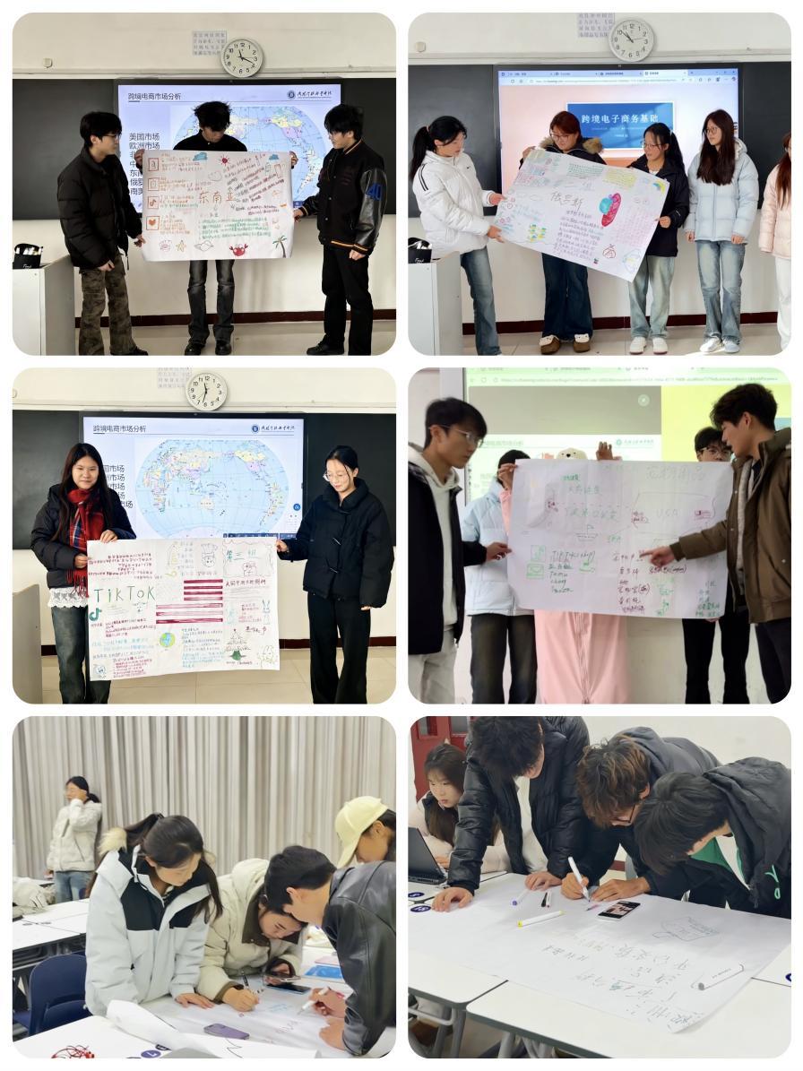 探究式任务驱动:学生分组抽取全球区域市场,开展文化、消费、平台等多维调研,通过手绘海报、课堂路演等形式可视化呈现成果,在真实问题中深化学习。