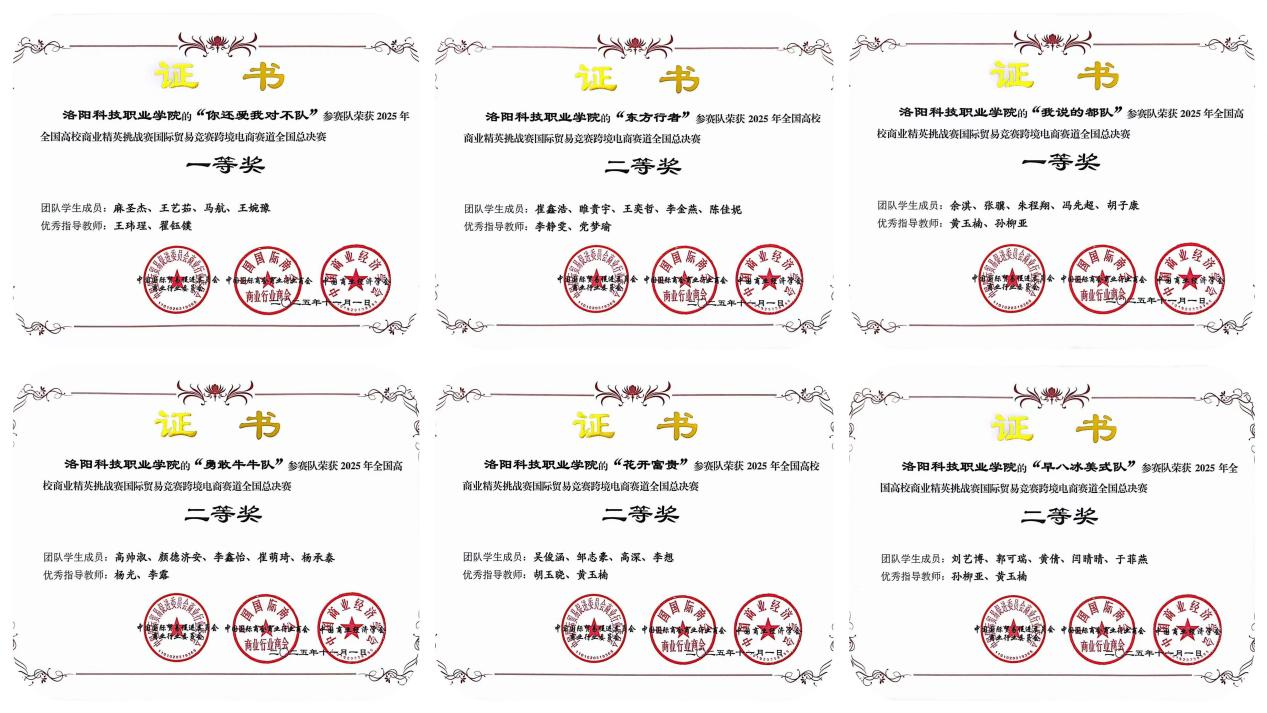 值得一提的是,课程中的“跨境直播模拟实战”环节,不仅锻炼了学生的英文表达与直播技巧,更直接赋能学生参与高水平学科竞赛。在2025年全国高校商业精英挑战赛国际贸易竞赛(跨境电商赛道)全国总决赛中,课程学生团队凭借扎实的实战能力与流畅的跨文化表达,累计荣获全国一等奖两项、二等奖四项,充分展现了教学改革对学生综合职业能力的显著提升作用。
