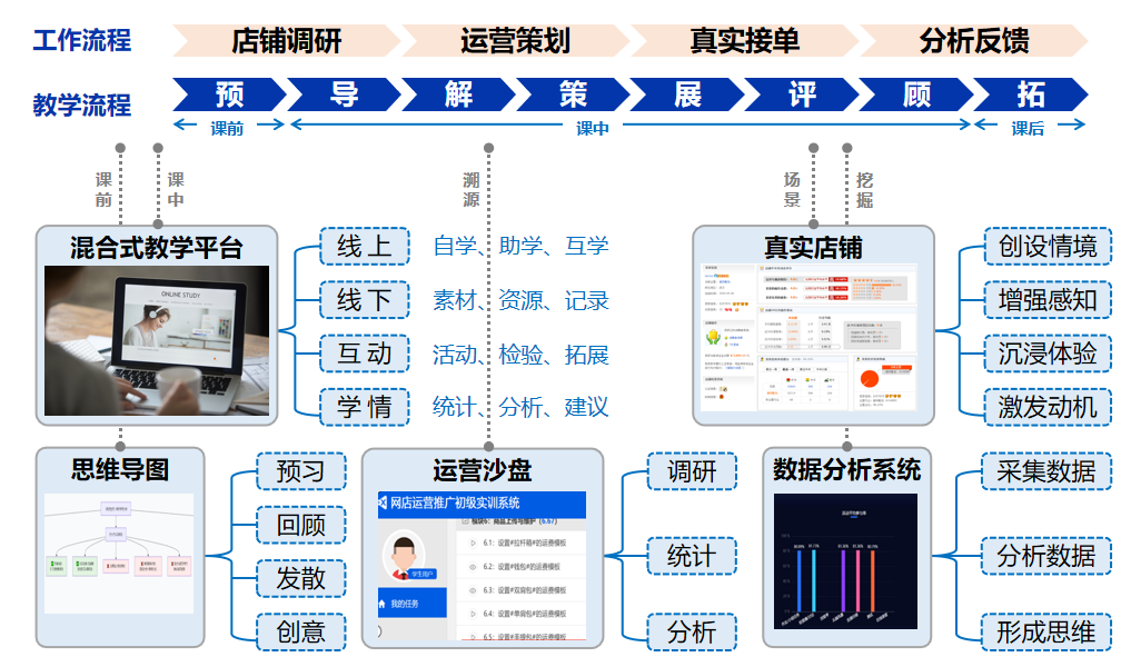 这门课没有枯燥理论,65%的时间都在实操、研讨、直播、接单!教学团队用 “真实平台、真实产品、真实流程、真实实务、真实能力、真实订单” 让学习 “活” 起来: