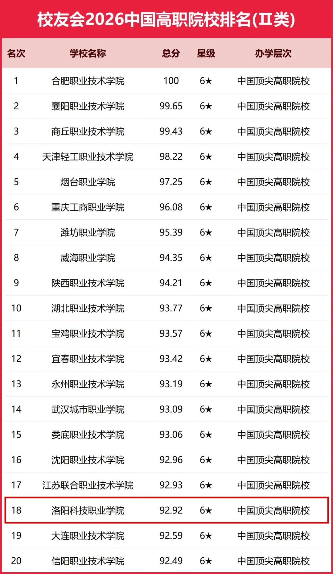 校友会2026中国高职院校(Ⅱ类)第 18 名