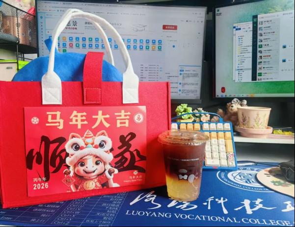 一杯杯醇香咖啡提神醒脑,寄托着对新学期元气满满的期许;一份份定制礼包细致入微。水杯守护健康,手机支架助力高效办公,跳绳倡导劳逸结合,U型枕呵护伏案辛劳。每一件礼物都承载着学校对教职工的牵挂与敬意,更传递着“洛科大家庭”的深情厚谊。