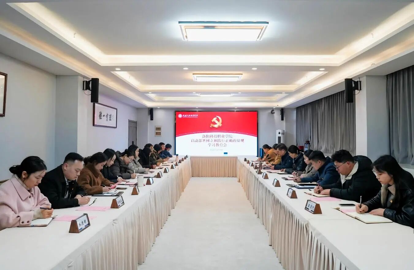 牛耀堂在讲话中强调,一是提高政治站位,筑牢思想根基。深入学习习近平总书记关于树立和践行正确政绩观的重要论述、考察河南重要讲话精神,深刻认识学习教育的必要性和重要性,增强思想自觉与行动自觉。二是聚焦重点任务,务求教育实效。紧扣实施方案,抓实学习研讨、问题查摆、整改整治、建章立制各环节。坚持问题导向与开门教育相结合,深入查摆问题,广泛听取意见,自觉接受监督,着力解决师生急难愁盼问题,确保学习教育成效可知可感。三是强化组织领导,健全长效机制。各级党组织主要负责同志履行第一责任人职责,带头推进“学查改”,引导党员干部从党性高度检视政绩观偏差及其根源。同步完善制度机制与考核评价体系,推动正确政绩观常态化长效化。四是凝聚发展合力,转化学习成果。将学习教育与学校高质量发展紧密结合,把学习成效转化为推动发展的强大动力,将正确政绩观要求融入立德树人、教学改革、管理服务全过程,把问题整改成效转化为破解难题的具体行动,激励党员干部凝心聚力、奋勇争先,为教育强国建设、民族复兴伟业贡献“洛科力量”。