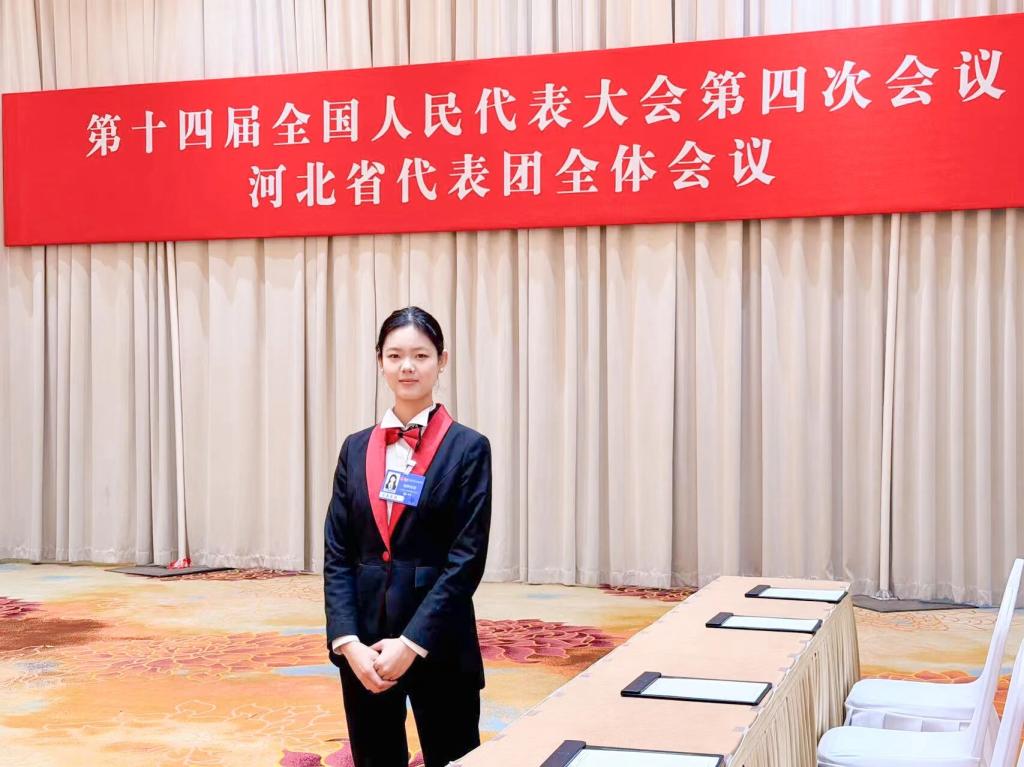 日新书院、艺术与设计学院动漫制作技术专业学生刘佳怡,担任两会礼仪员,坚守迎送引导一线