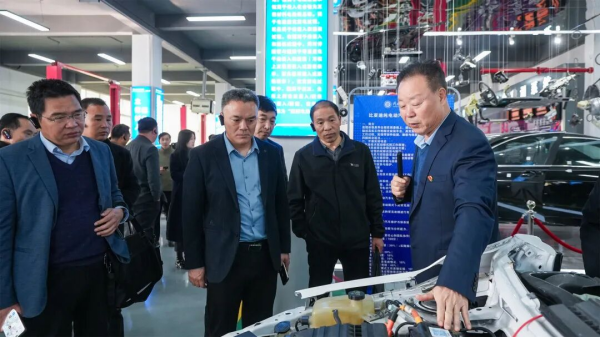 考察团随后参观了学校融媒体中心、教育部中德(SGAVE)项目实训室、新能源汽车实训室、平安校园指挥中心、心理发展中心、福纳智能制造产业学院及各书院工坊等重点教学与实践场所,对学校实训教学、校园管理和学生发展模式进行了深入了解;在参观过程中,考察团成员与师生亲切交流,对实训室的常态化开放与理论实践1:1的课程安排、全覆盖的智能安防系统,以及将工坊嵌入生活区打造“第二课堂”的创新理念给予了高度评价和赞赏。