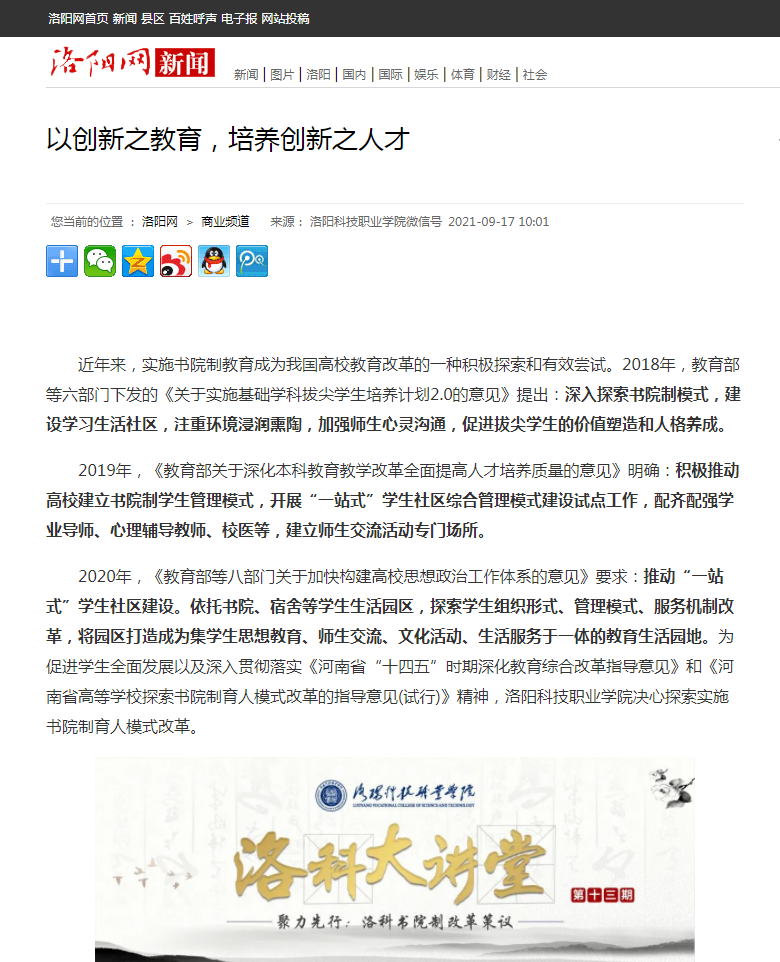 【洛阳网】刊发《以创新之教育,培养创新之人才》