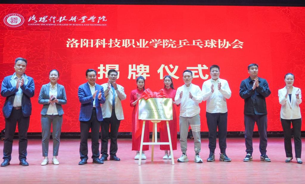 随后,在隆重的音乐声中,校长刘丽彬博士和其他校领导同北京天勤罡正的领导们一起,为乒乓球协会成立正式揭牌,校长刘丽彬博士和付楠先生为乒乓球协会隆重开球。同时,学校乒乓球协会聘请李展先生为洛阳科技职业学院乒乓球协会教学顾问,聘请付楠先生为洛阳科技职业学院乒乓球协会技术顾问,聘请李高峰先生为洛阳科技职业学院乒乓球协会总教练。