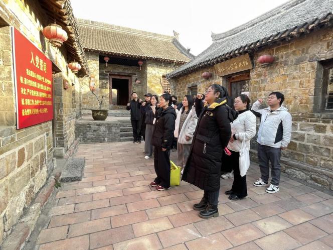 面对鲜红党旗,全体党员郑重举起右拳,重温入党誓词。“我志愿加入中国共产党……为共产主义奋斗终身,随时准备为党和人民牺牲一切,永不叛党。”铿锵誓言在旧址院落中回荡,表达了大家传承红色基因、恪守党员承诺、投身教育强国事业的坚定决心。