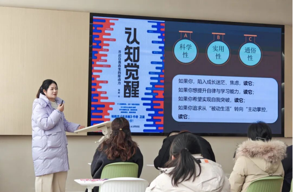 学校倡导“以书为钥”与“以读为桥”,通过研读《认知觉醒》《活出心花怒放的人生》等经典著作,汲取元认知智慧与积极心理学能量,推动育人模式从刚性“管理”向温情“陪伴”转型。同时,读书分享会打破岗位壁垒,让育人导师、心理教师、书院院长及生活导师等同台共话,在思想碰撞中凝聚教育共识,真正构建起师生共读共写的成长共同体。