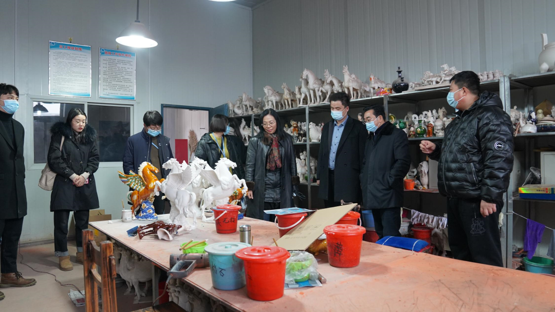 在孟津区文化馆李冰副馆长的带领下,刘丽彬一行首先参观了国家级非遗唐三彩烧制技艺项目保护单位、国家级非遗示范基地、河南省文化产业示范基地——洛阳九朝文物复制品有限公司。
