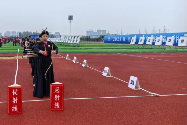 本次赛事由河南省射击射箭协会主办、郑州航空港区管委会承办,是一场融合传统礼射文化与现代体育精神的特色赛事。比赛中,洛科学子不仅展示了执弦、挟矢、引彀、发矢等传统射艺,更通过立弓礼、藏弓礼、揖礼等仪程,深入展示“射以观德”的文化内涵。值得一提的是,所有参赛箭矢均由礼射工坊师生亲手制作,从选材到打磨均遵循古法工艺,体现了对传统文化精髓的尊重与传承。