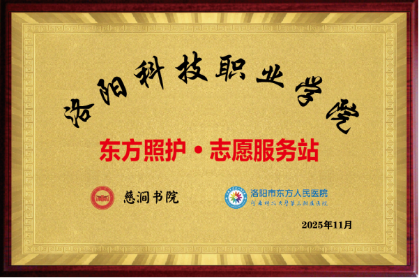 初冬暖阳,温情汇聚。近日,洛阳科技职业学院慈涧书院与洛阳市东方人民医院老年照护中心、洛阳市义工联合会三方共建的“洛阳科技职业学院慈涧书院东方照护中心志愿服务站”在洛阳市东方人民医院正式揭牌成立。这不仅是学校深化“实践育人”理念、拓展志愿服务内涵的重要里程碑,更标志着校院社协同育人机制从此迈入实体化、长效化运作的崭新阶段。