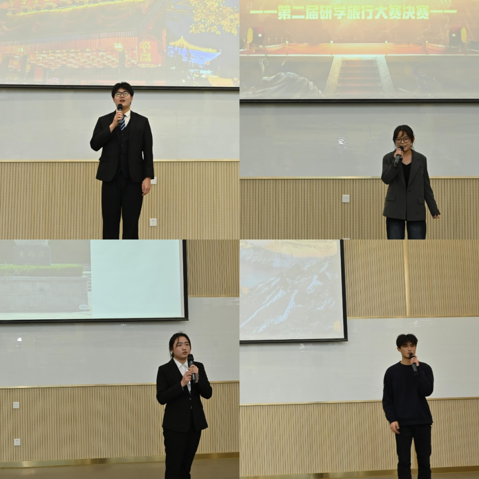 决赛现场,参赛选手围绕模块二展开终极比拼。在研学旅行产品方案环节,各团队提交了主题鲜明、结构完整的产品设计方案;在课程单元模拟展示环节,选手们充分发挥专业素养,在4分钟内通过PPT、视频等多种形式,生动展示了自选单元的课程内容。展示内容既有对传统文化遗产的深入解读,也有对红色革命精神的创新传承,充分展现了当代大学生的专业能力与创新思维。