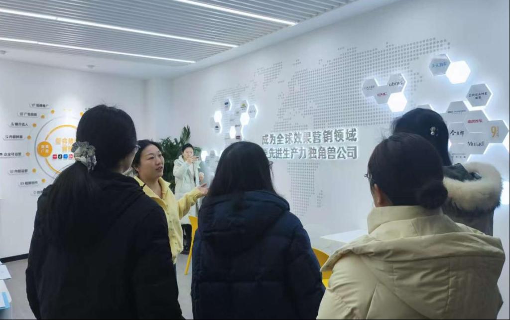 日辰集团人力资源部邵经理对工商管理系一行的到来表示热烈欢迎,并陪同参观了办公区的整体环境、核心业务部门及企业文化展示区。通过实地走访,老师们直观了解了日辰集团在电商运营及新媒体效果营销方面的发展历程、业务布局、技术创新成果以及现代化、智能化的办公氛围,切身感受了企业的运营模式与职场环境。