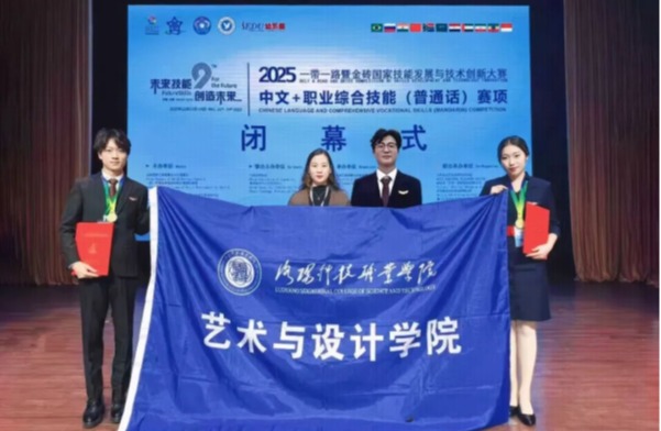 近日,2025一带一路暨金砖国家技能发展与技术创新大赛“中文+职业综合技能(普通话)”赛项全国总决赛在合肥圆满落幕。学校艺术与设计学院王乙童、薛佳豪、马一航三名学生凭借扎实的专业能力、出色的语言运用与...