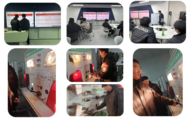“以前上课都是老师讲我们记,这次我们自己找视频里的灯光错误操作,还能分享自己遇到的行车困惑,感觉特别有代入感!”24新能源汽修01班学生陈玉坤在课程导入环节兴奋地说。