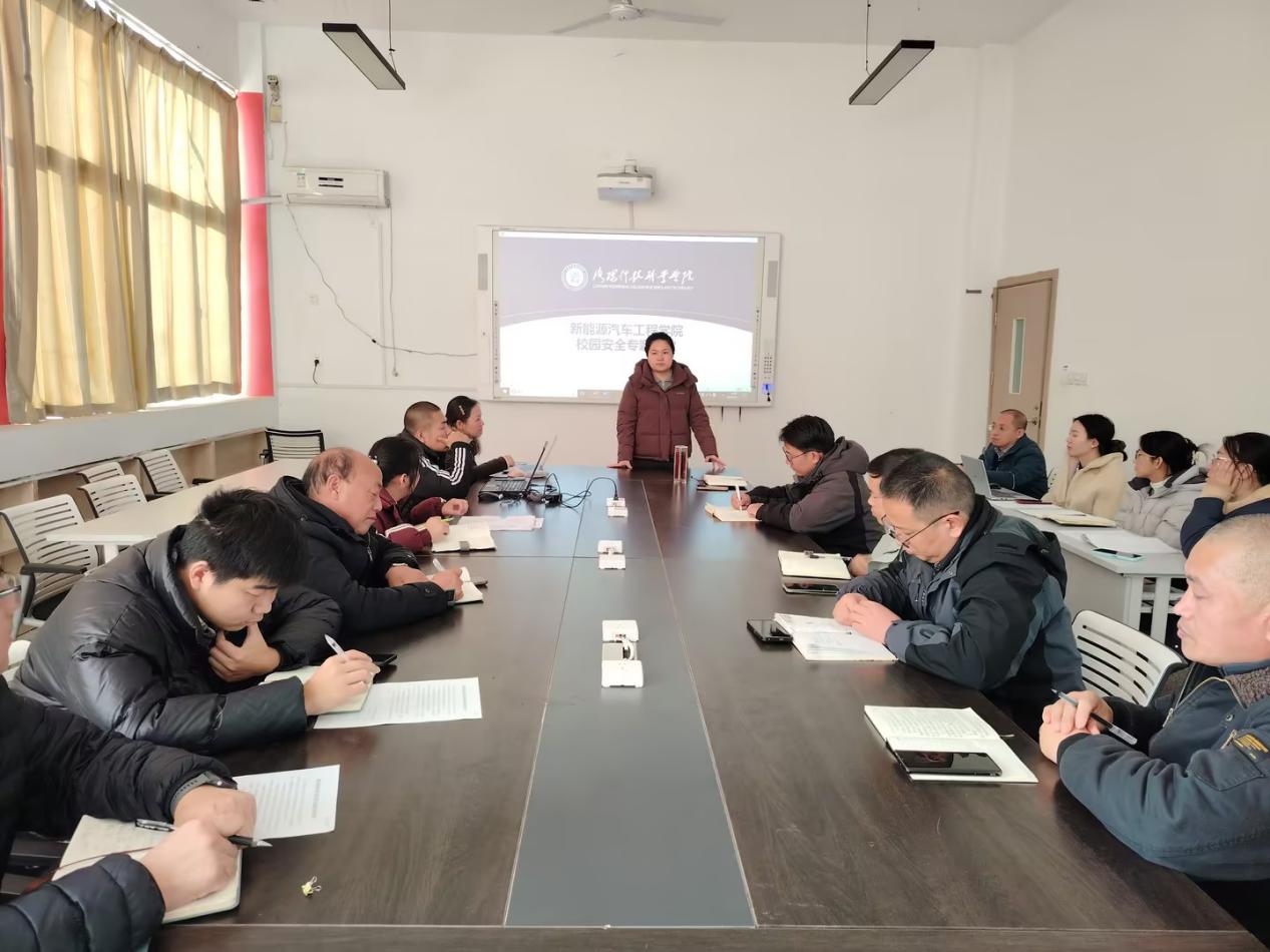 为深入贯彻落实全省教育系统安全工作会议精神及地方公安机关关于校园安全治理的各项部署,新能源汽车工程学院于2025年12月17日召开学院安全工作专题会议。会议由执行院长金瑞鑫主持,旨在进一步筑牢校园安全防线,切实保障全体师生生命财产安全与学校教育教学秩序稳定。