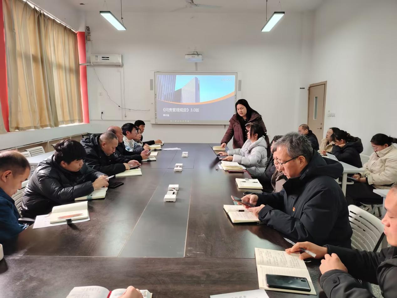 会议就《问责管理规定》(3.0版)开展了专题培训,系统阐释了问责的基本原则、适用情形、规范流程与执行方式,进一步厘清了教师在教育教学、学术科研及学生指导等各环节的责任边界。会议强调,全体教师应深入理解规定精神,牢固树立责任意识与纪律观念,真正将制度要求转化为思想自觉与行动自觉,做到心有所畏、行有所止,以高度自律规范职业行为,坚决防范和杜绝各类违规违纪现象的发生。