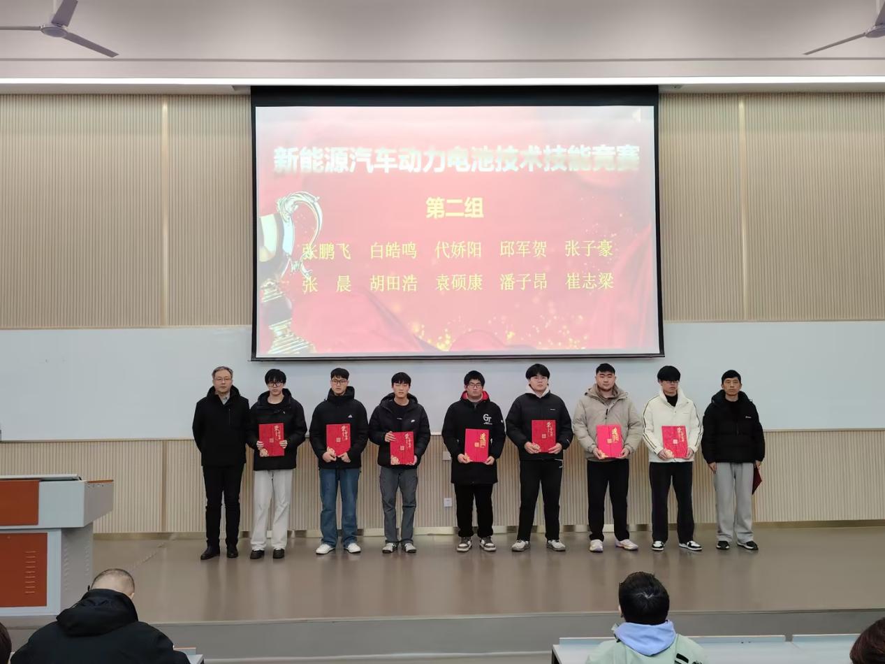 在紧张激烈的角逐结束后,大赛于12月24日下午在格物楼305教室进入备受瞩目的颁奖环节,学院办公室主任邢军锋老师宣读本次新能源汽车动力电池技术技能大赛的获奖名单。当一个个获奖学生的名字被念出时,现场响起阵阵热烈掌声,既是对获奖学子辛勤付出的肯定,也是对全体参赛选手勇于挑战的鼓励。
