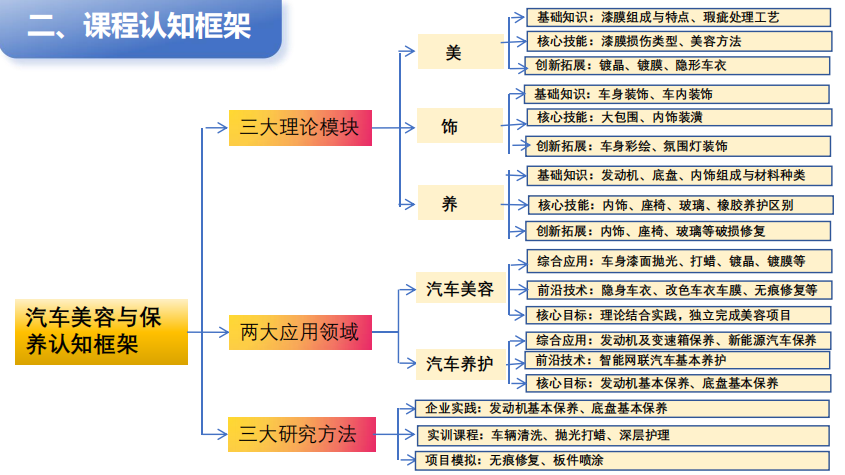 两大应用领域聚焦汽车美容、汽车养护两大核心场景,将智能网联汽车养护等行业最新需求纳入教学内容;
