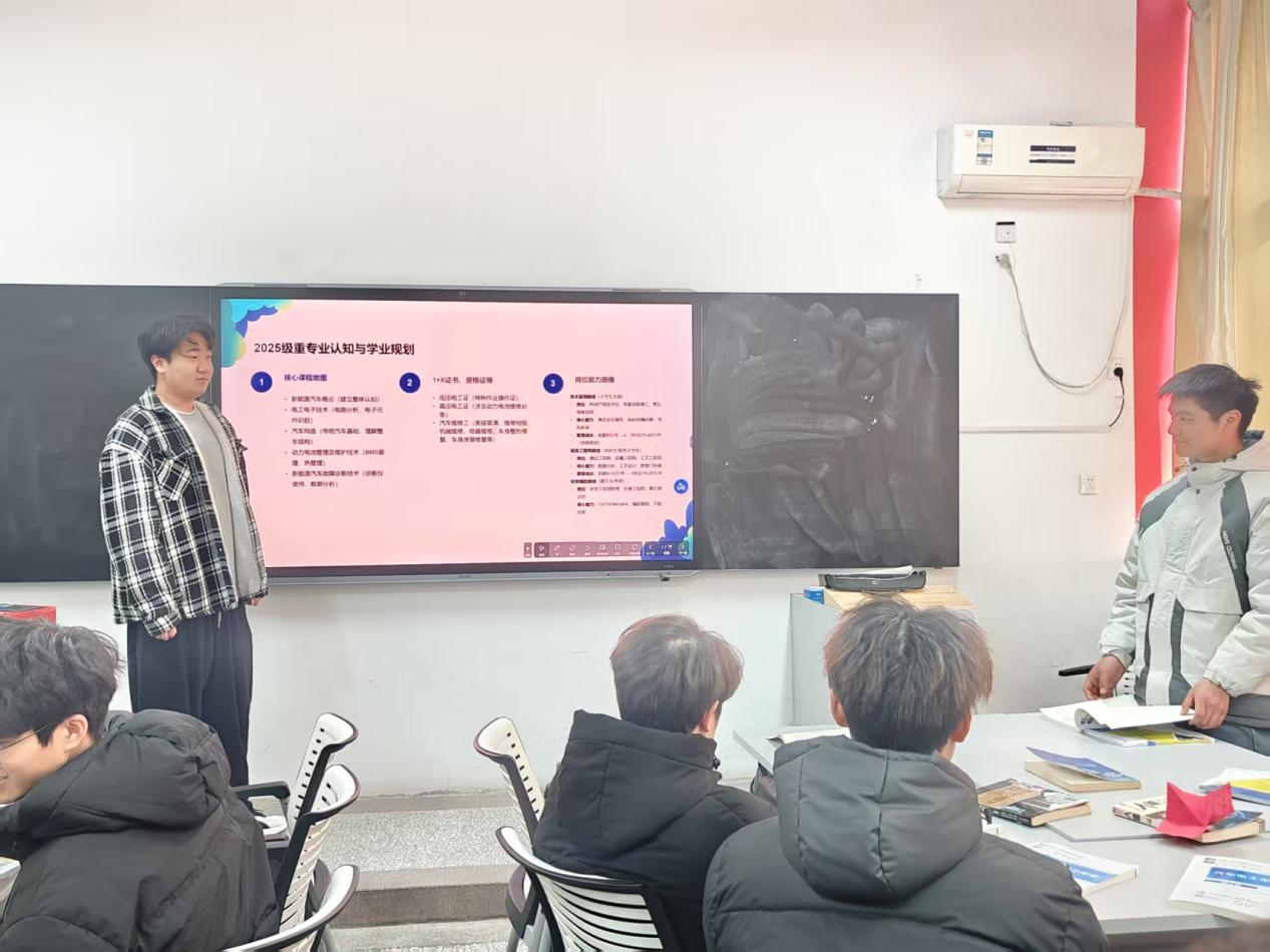 针对25级新生开展专业认知教育,解读培养方案与课程体系;为24级学生梳理技能竞赛、考证升学路径,结合学情分析制定个性化学习计划。