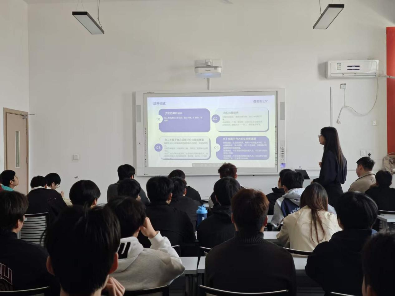 中州时代、吉利汽车等企业技术负责人结合中国新能源汽车产业从“跟跑”到“领跑”的发展历程,讲述一线技术人员攻坚克难的真实案例。“原来我们学习的技术就是国家核心竞争力的一部分,一下子觉得学习目标更清晰了”,24级新能源专业学生在活动反馈中说道。