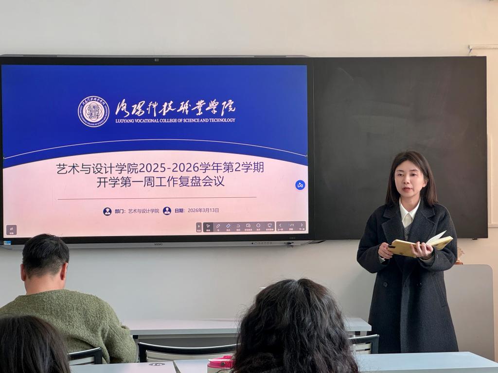 新春启航,绘就蓝图。随着春天的脚步渐近,洛阳科技职业学院艺术与设计学院的师生们再次回到了充满活力的校园。为保障2025-2026学年第二学期各项教育教学工作平稳有序进行,明确阶段发展目标,洛阳科技职业学院艺术与设计学院于2026年3月13日召开了开学第一周工作复盘会议。金卓院长及全体教职工共同出席,针对开学第一周的运行情况进行深度总结,凝聚全院育人合力,以务实的态度和严谨的作风,共同绘就洛阳科技职业学院艺术与设计学院高质量发展的新蓝图。会议由金卓主持。